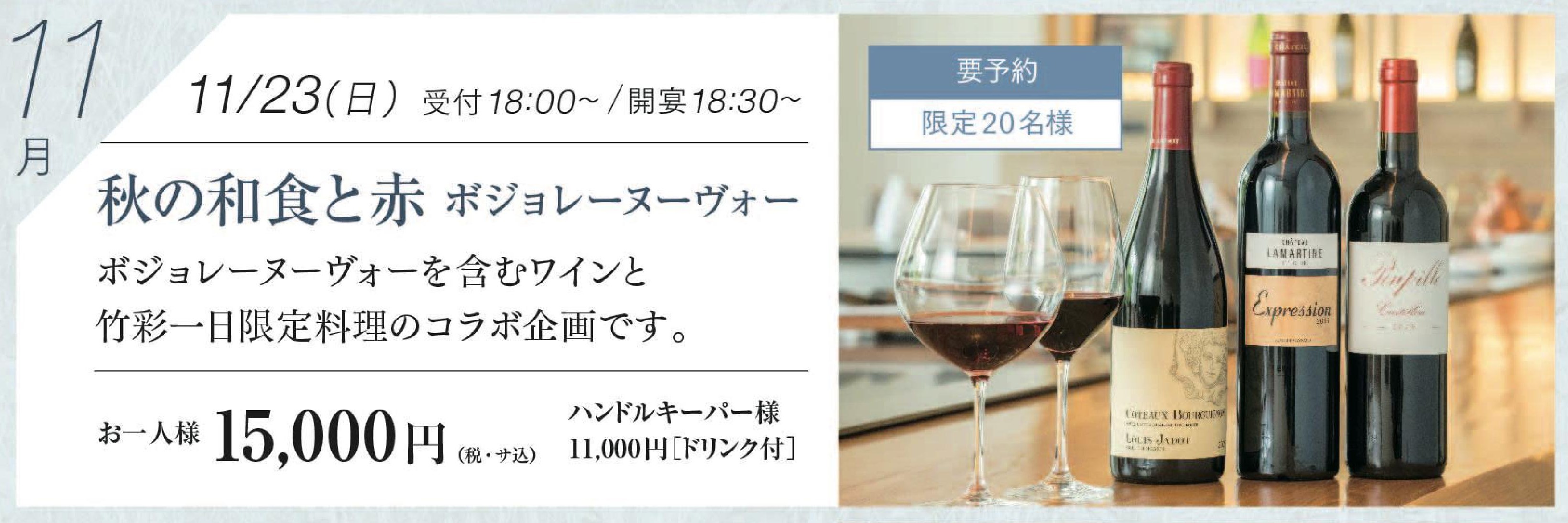 11月23日(日) 受付18:00 開演18:30 ※受付後、随時ワイン提供開始