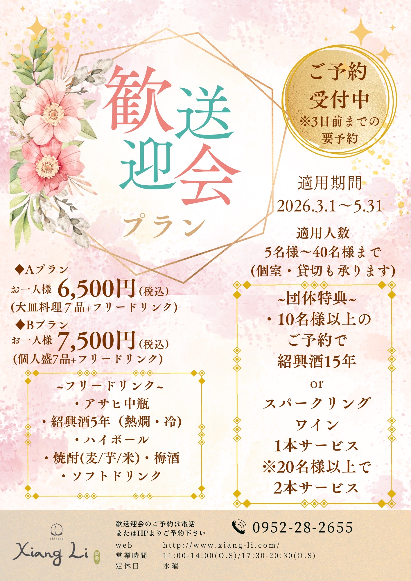 2026.3.1~2026.5.31 シャンリー歓送迎会プランご予約開始