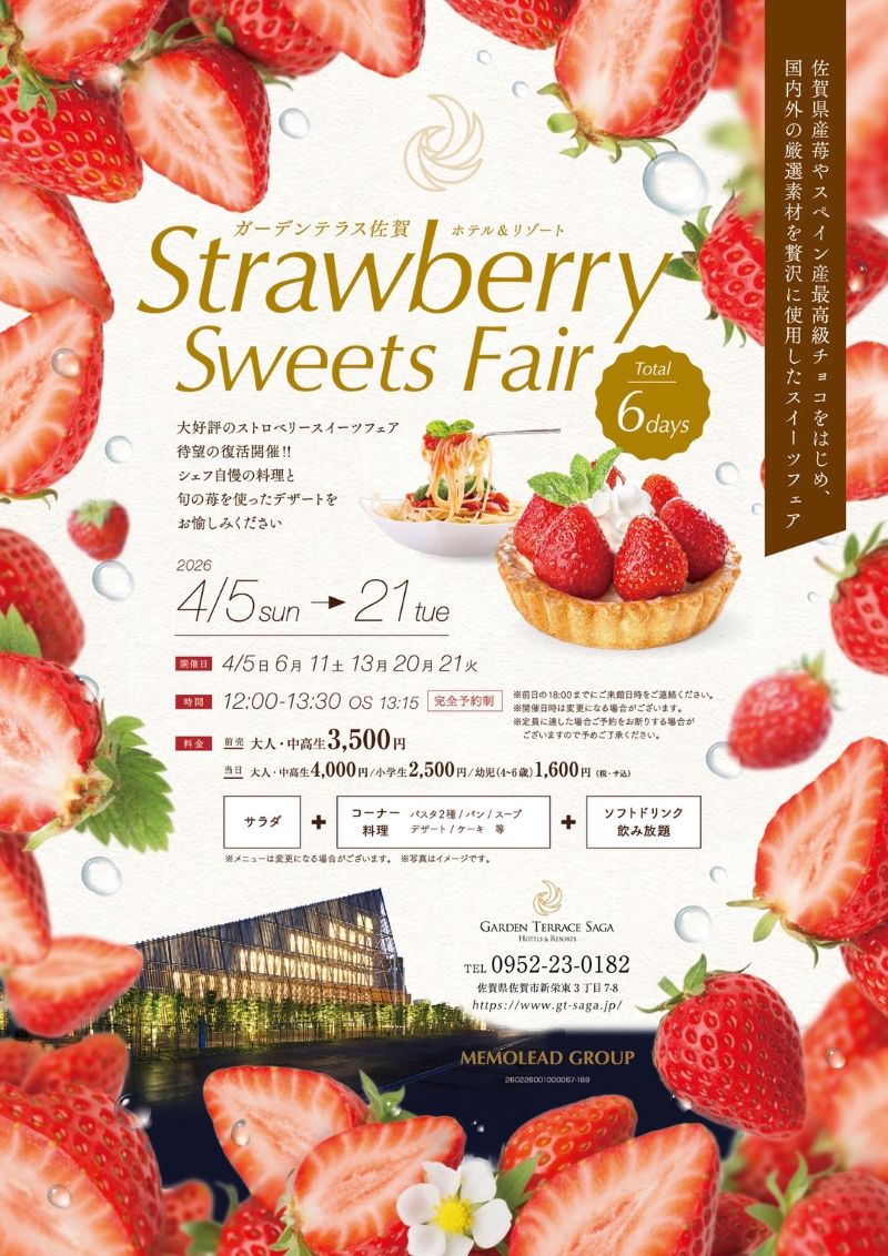 佐賀県産イチゴやスペイン産最高級チョコレートをはじめ、国内外の厳選素材を贅沢に使用したスイーツフェア♪【料金(税サ込)】